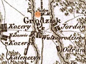 „Pierwszą wzmiankę o daninie żydowskiej czyni w pokwitowaniach za dziesięciny ks. proboszcz Klemens Mokronowski w 1752 r. On to prawdopodobnie zezwolił, jak widać z opisu wizyty ks. Biskupa Szembeka z r. 1759, pobudować żydom, w Grodzisku mieszkającym dom modlitwy w oddalonem od kościoła miejscu i on dał prawo grzebania zmarłych po za miastem, na polu wyznaczonem, skromnie, bez pompy i przepychu. Akt tego pozwolenia (…) został wciągnięty do aktów Magistratu.”
