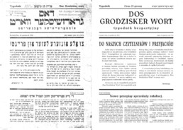 W 1934 roku ukazał się pierwszy numer lokalnego tygodnika „Dos Grodzisker Wort”. Jego pojedynczy egzemplarz jakimś zrządzeniem losu dotrwał do naszych czasów i jest jedną z dosłownie kilku materialnych pamiątek po grodziskich Żydach. Oryginał gazety znajduje się w zbiorach grodziskiego Ośrodka Kultury i dzięki uprzejmości tej instytucji został udostępniony. W 2010 roku wydaliśmy dwujęzyczny reprint gazety. Autorką tłumaczenia jest Annę Ciałowicz, a Dariusz Jażdżyk z Jidysz Lebt zaprojektował dwujęzyczne wydanie. Wydrukowaliśmy gazetę i rozdaliśmy mieszkańcom w lutym 2010 r., w rocznicę likwidacji grodziskiego getta.